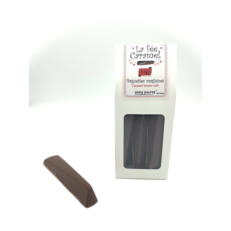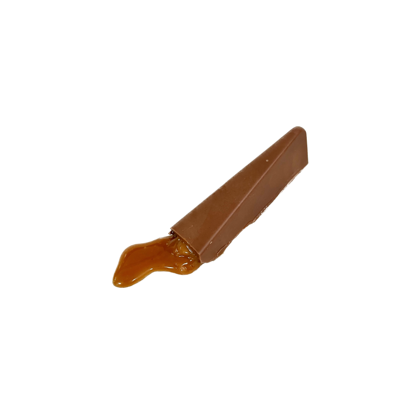 Bâtons de chocolat au lait fourrés de caramel beurre salé onctueux.