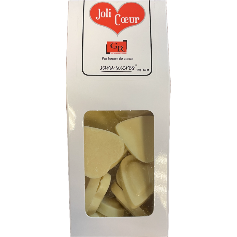 Ces bonbons fins au chocolat blanc - sans saccharose avec un index glycémique bas - feront craquer ceux que vous aimez. Cœur à croquer, cœur fondant, cœur à prendre…. Toujours pur beurre de cacao, pour un vrai goût de chocolat.